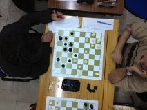 A foto em cima reflete já a derrota das brancas, tendo Carlos Ribeiro desistido após mais três lances já que era inevitável a promoção do peão da coluna e).